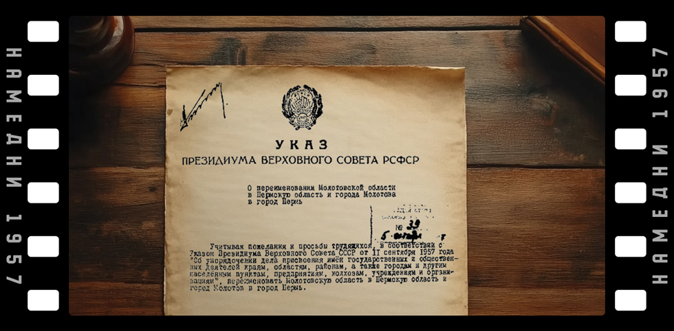 В духе «восстановления ленинских норм» указ президиума Верховного cовета СССР от 11 сентября напоминает, что при первовожде его имя ничему не присваивалось – Ленинград и Ульяновск получили эти свои названия в 1924 году, после кончины основателя СССР. Решено впредь «присвоение имен» производить только посмертно, а сейчас переименовать населенные пункты и предприятия, названные в честь «ныне здравствующих государственных и общественных деятелей». Это прежде всего касается членов «антипартийной группы» (см. 1957) – ее разгром, конечно, и побудил принять указ именно сейчас. Город Молотов – снова Пермь, райцентр Молотовск в Кировской области – снова Нолинск, а Молотовск в Архангельской области теперь будет Северодвинском. Кагановичевский район в Павлодарской области Казахстана стал Ермаковским, имя Кагановича больше не носит Военно-транспортная академия (а Московский метрополитен уже два года не имени Кагановича, а имени Ленина). Указ подписан Климентом Ворошиловым, номинальным главой государства, и по нему украинский Ворошиловград сделают снова Луганском (с 1970-го – вновь Ворошиловград, с 1990-го – опять Луганск), а город Ворошилов в Приморском крае станет Уссурийском.